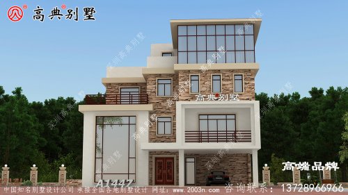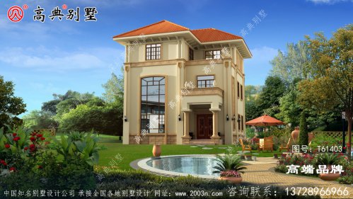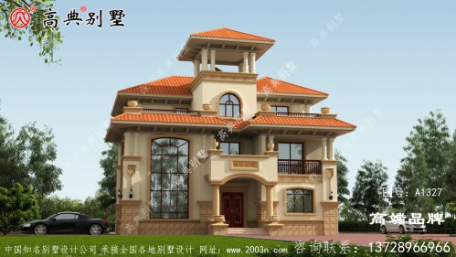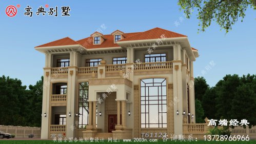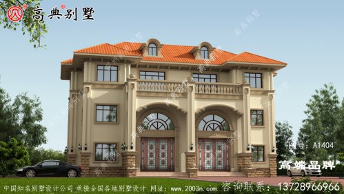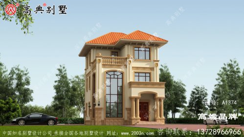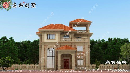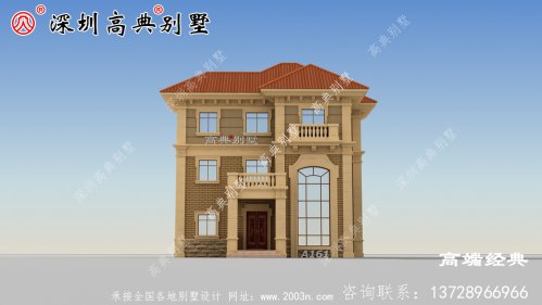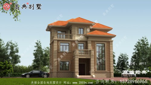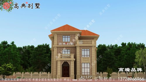 这款 简朴 而 温馨 的三层农村别墅, 橘色 的 屋顶 , 巨大 的 落地窗 和 两侧 的 装饰 , 简单 的 外观 增添 时尚元素 , 改...