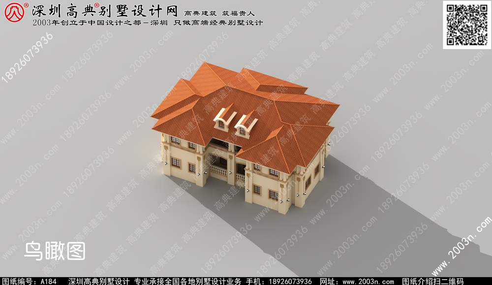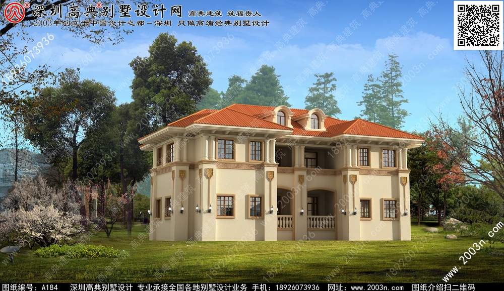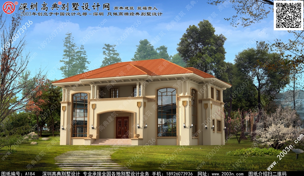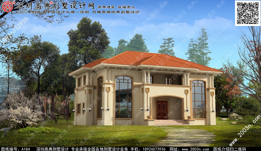 高档精美二层别墅外观效果图 首层216平方米图纸编号a184
