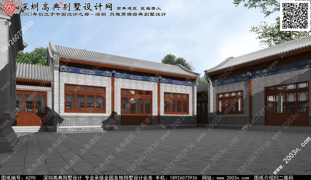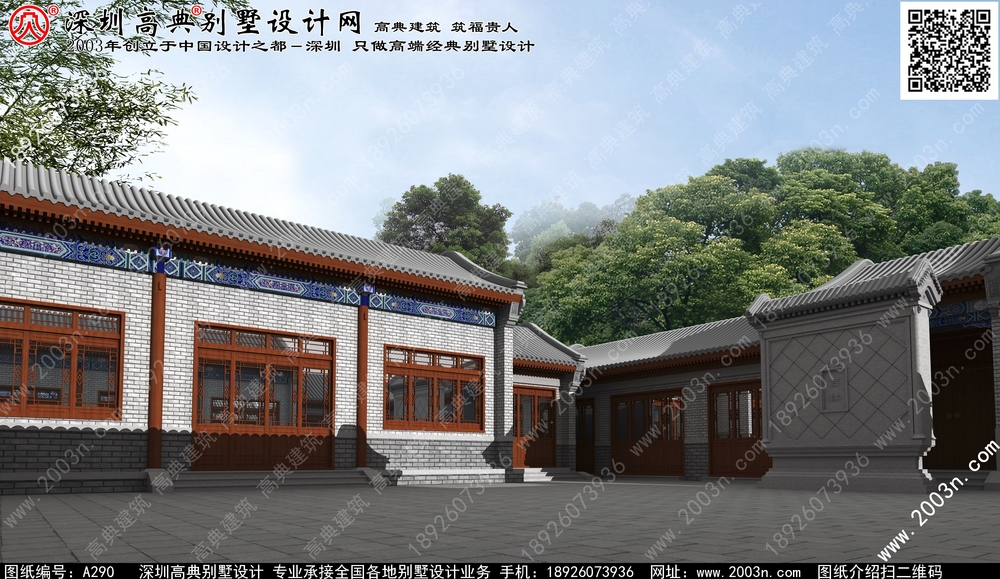 农村别墅外观效果图, 创新中式风格, 新中式别墅, 北京四合院