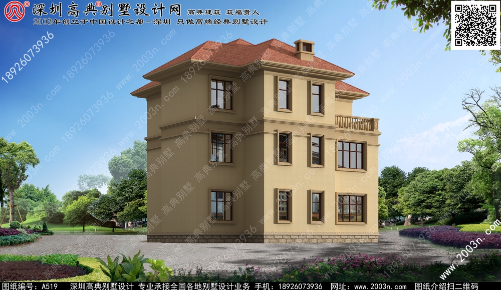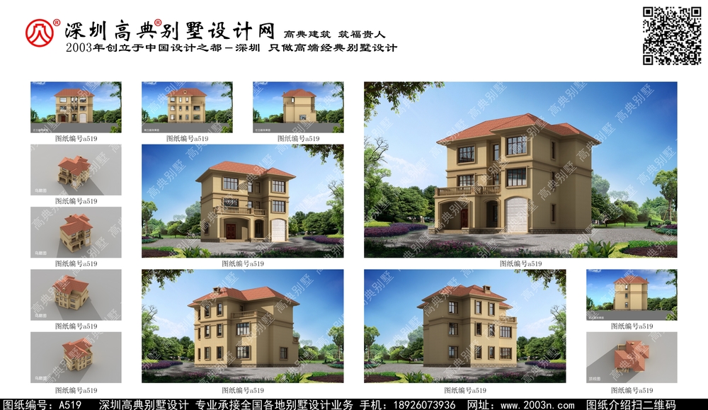 A519号别墅设计图纸及效果图介绍: