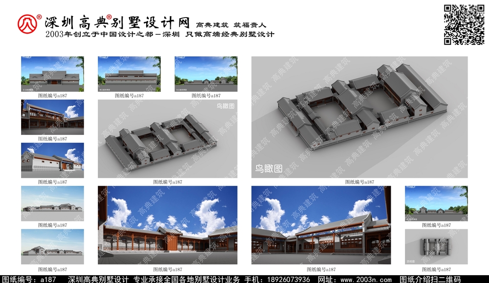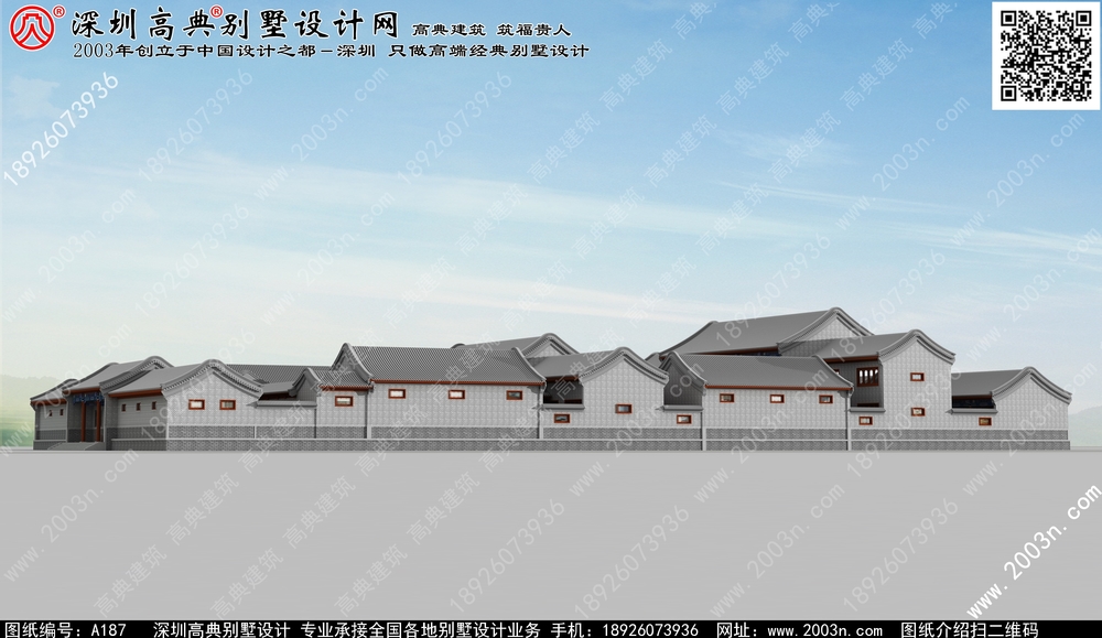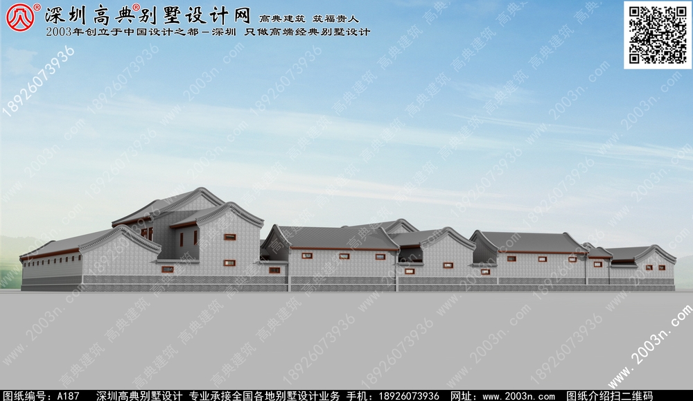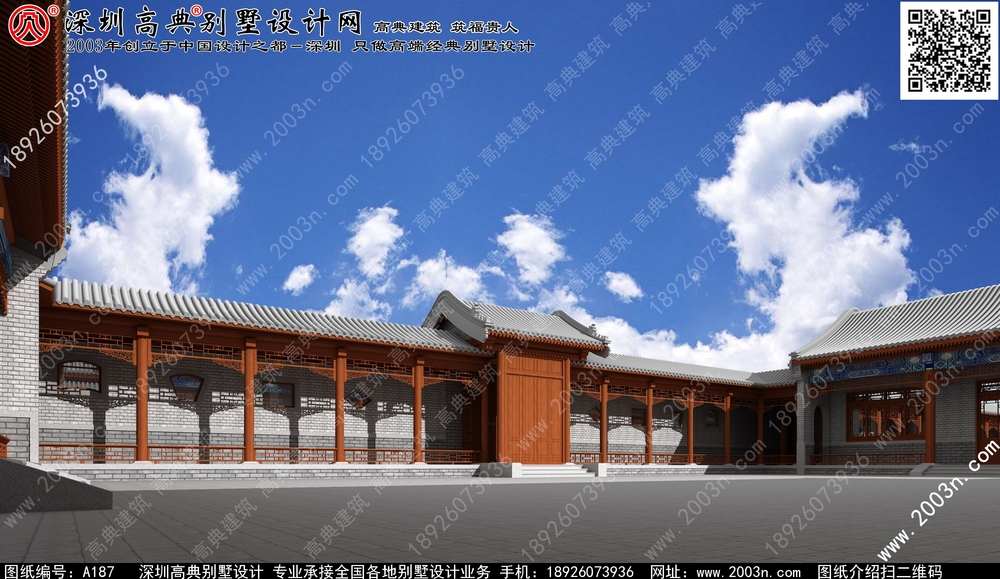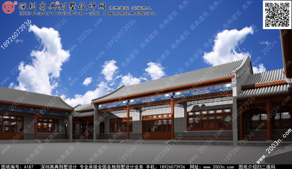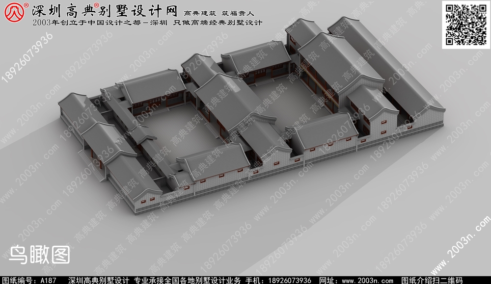 经典北京四进四合院外观效果图首层2173平方米图纸编号a187