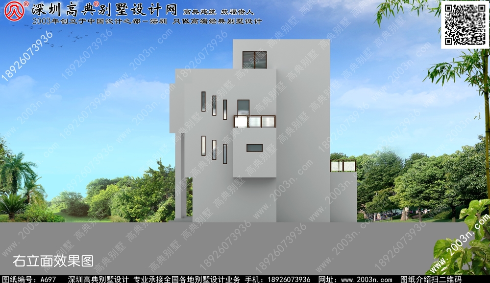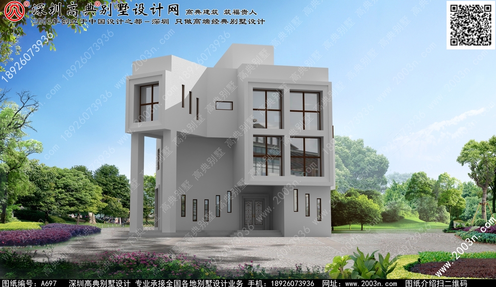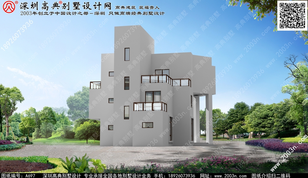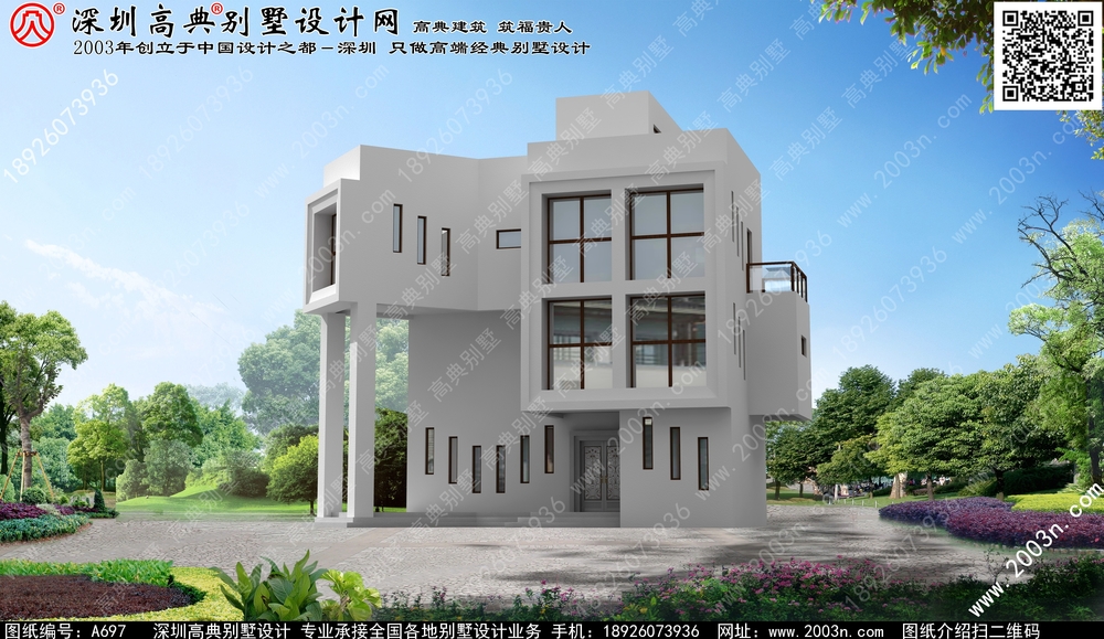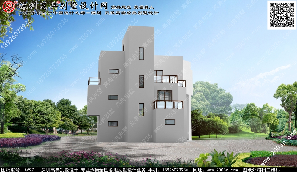三层别墅外观效果图首层96平方米图纸编号A697别墅图片大全, 小别墅外观图片大全, 欧式别墅外观图片大全