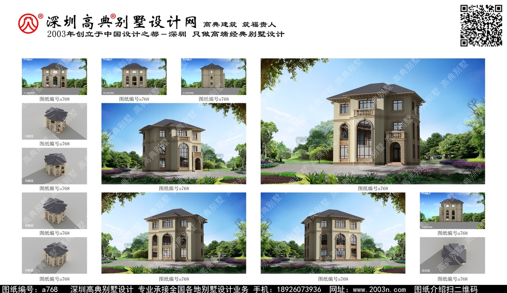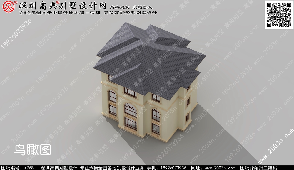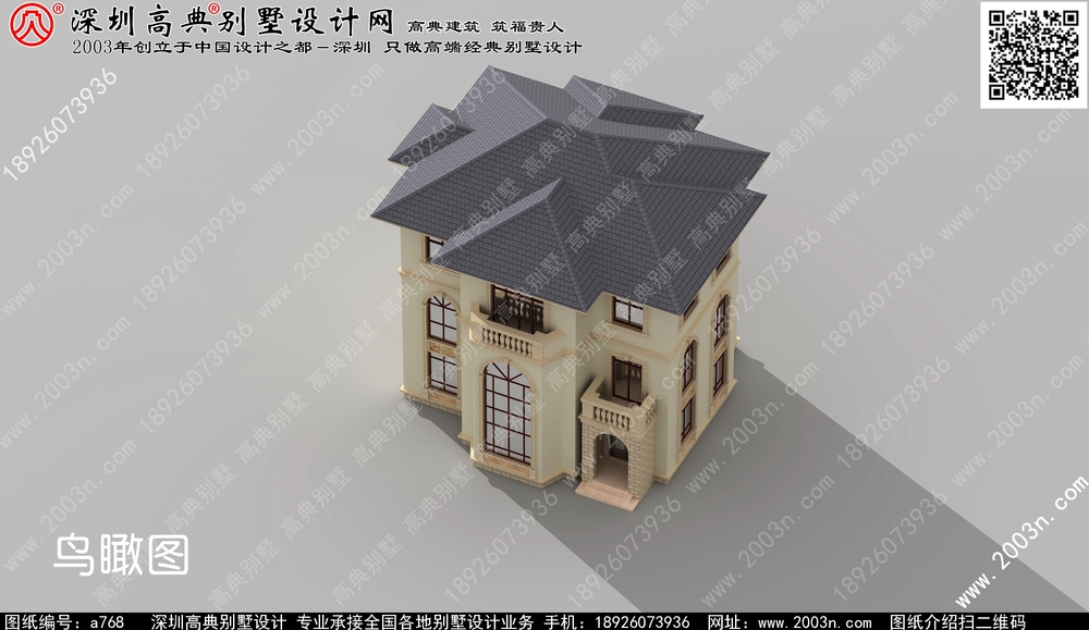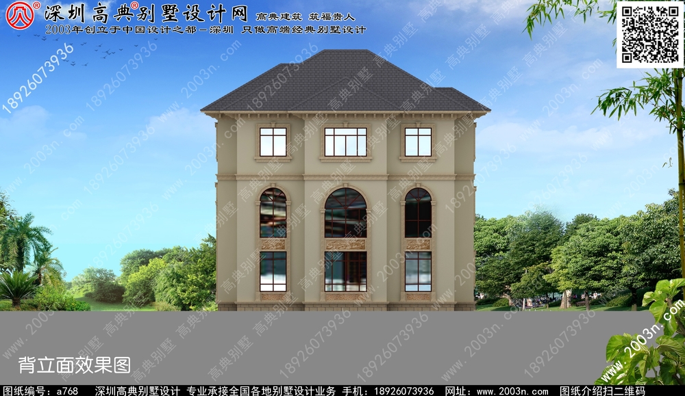独栋别墅外观效果图首层130平方米图纸编号A768
