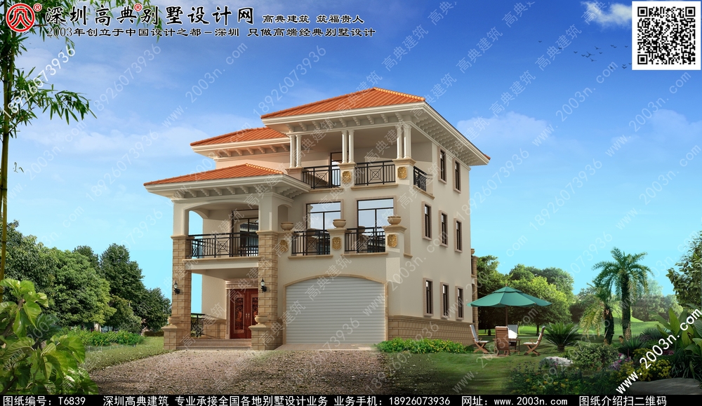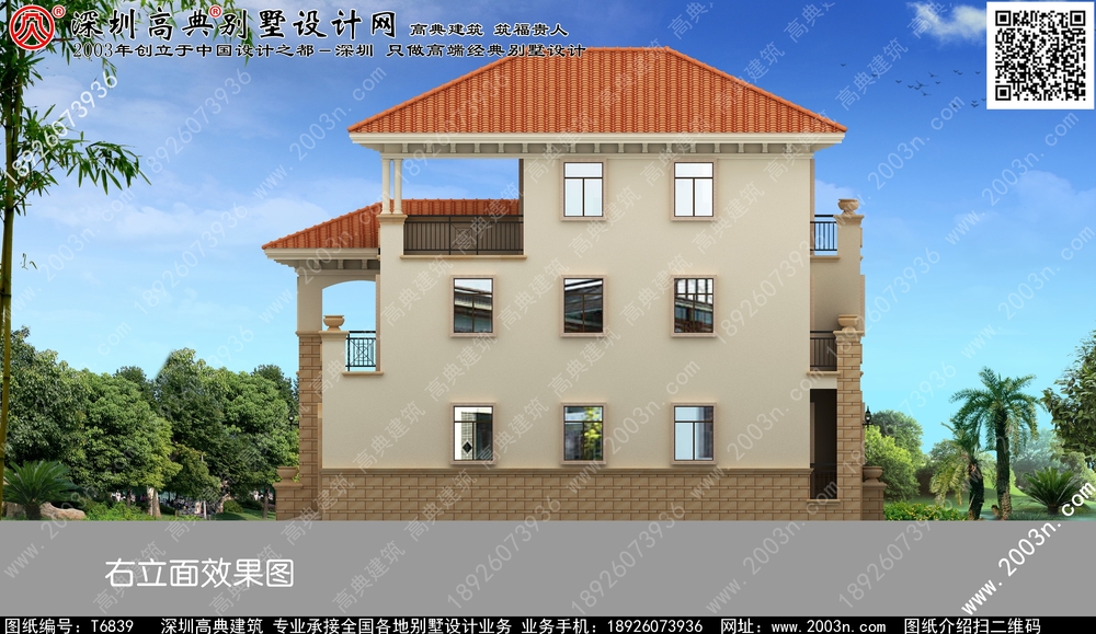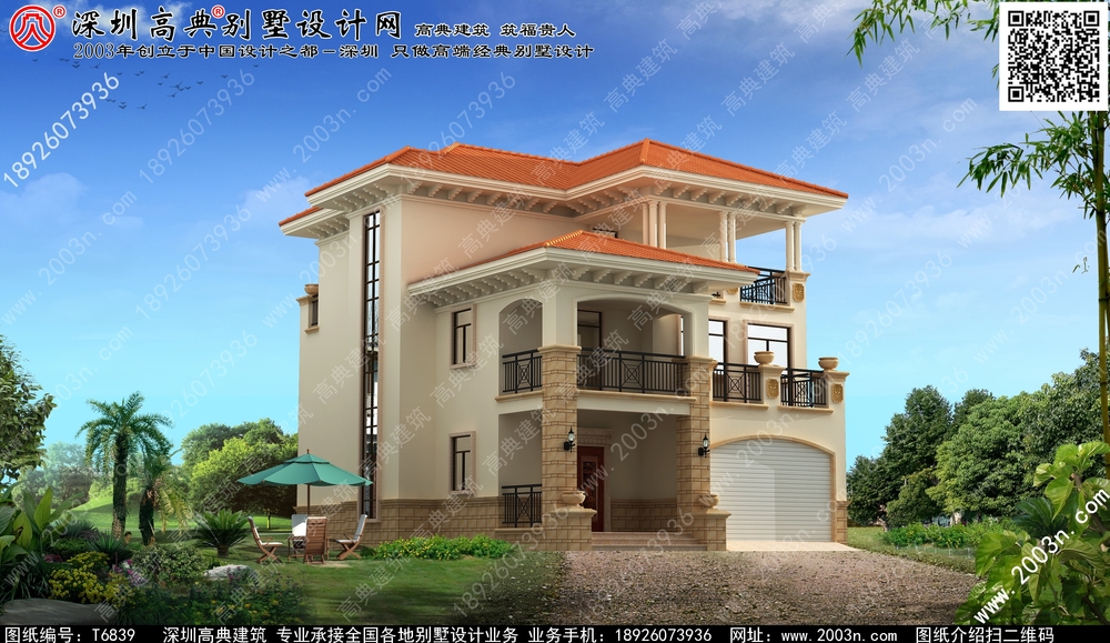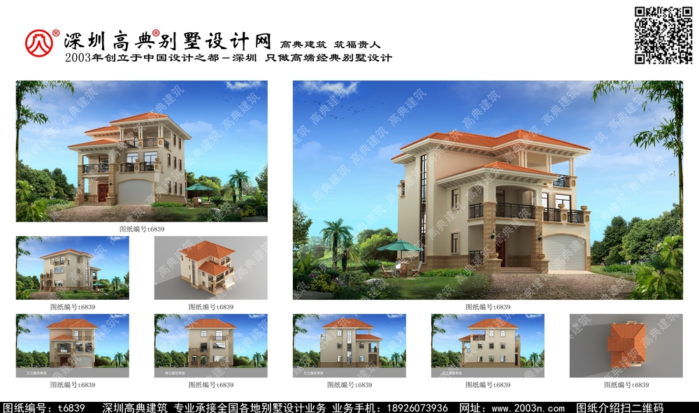 别墅外观效果图大全首层145平方米图纸编号T6839