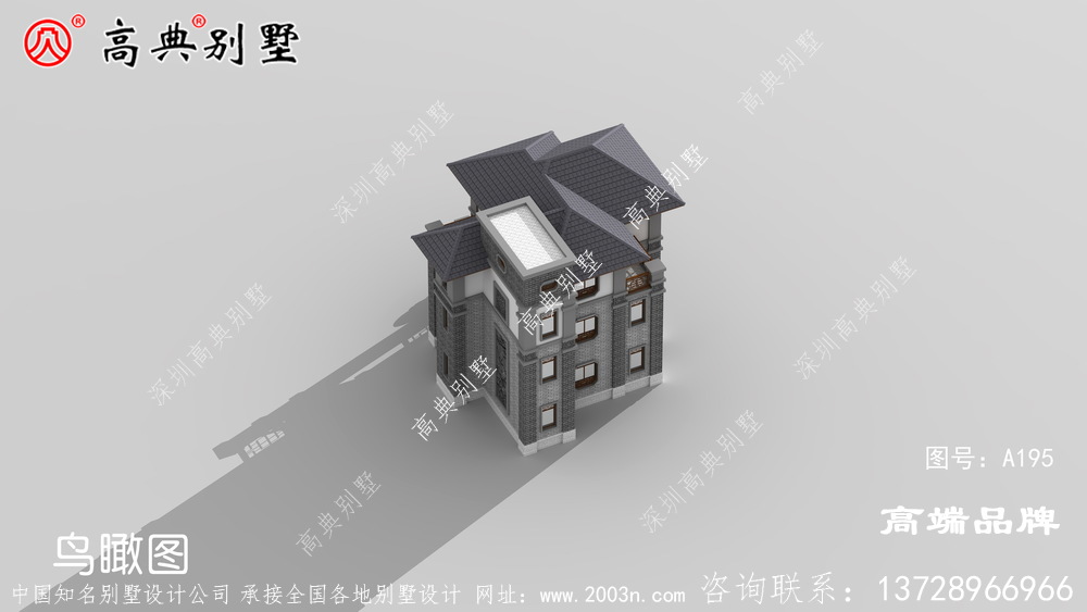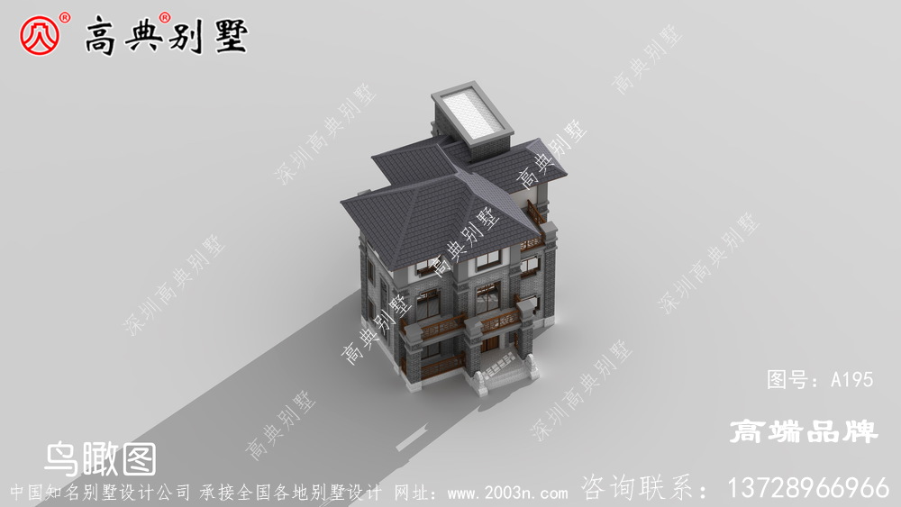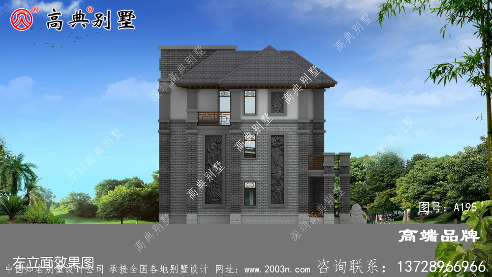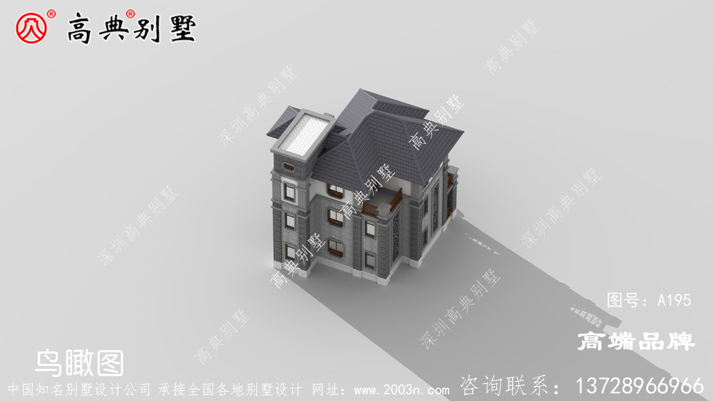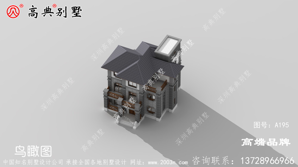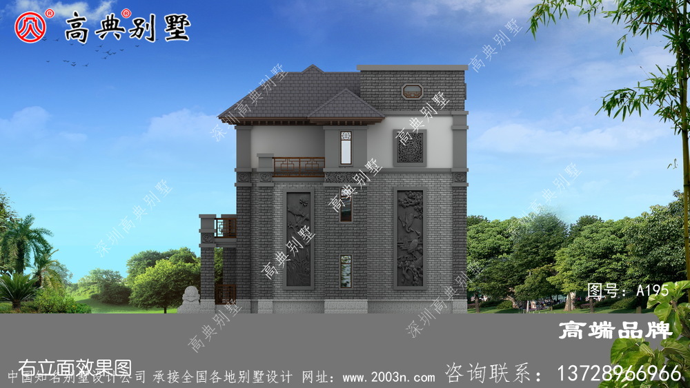 A195号别墅外墙主要材料:水泥平板瓦、真石漆、面砖、麻石