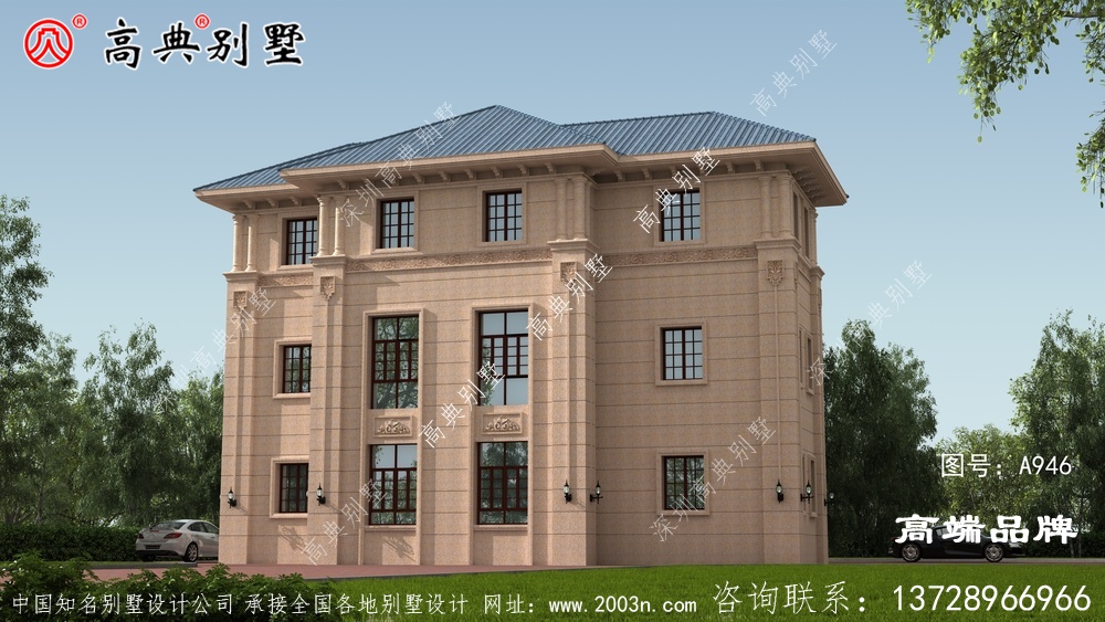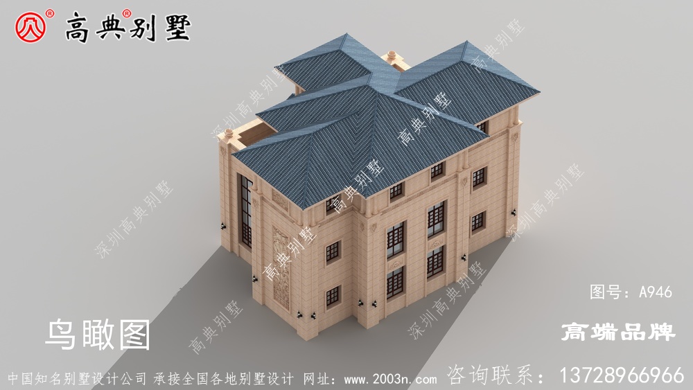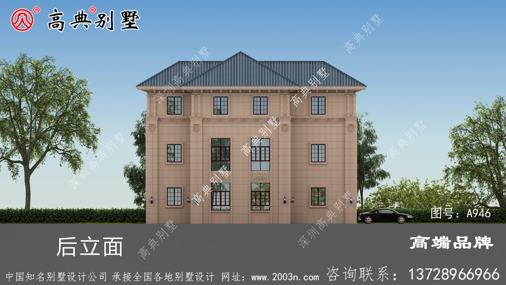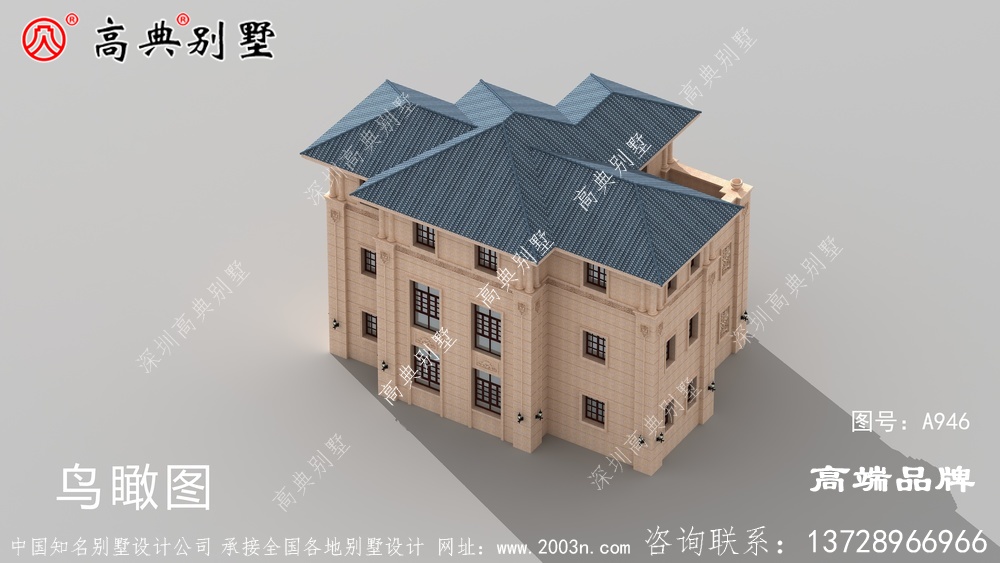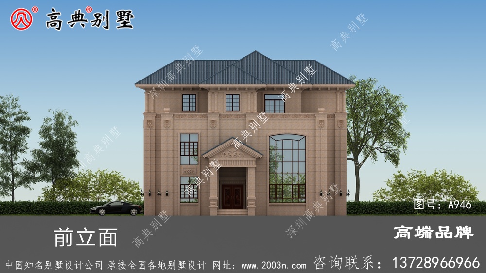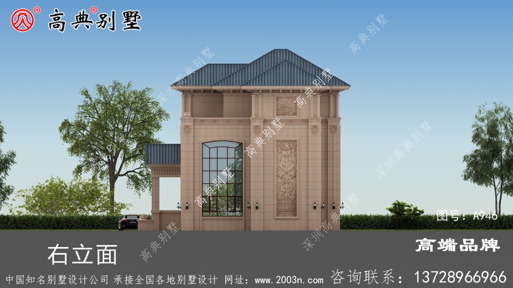 A946号别墅此别墅外墙主要材料:310X310S瓦、荔枝面沙漠棕纯石材干挂、葫芦柱栏杆