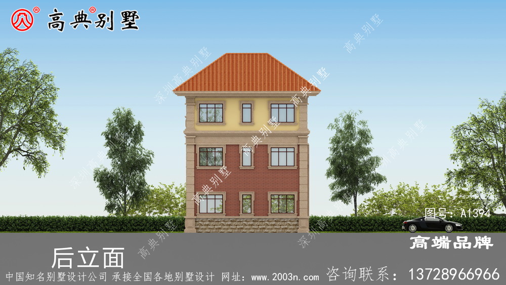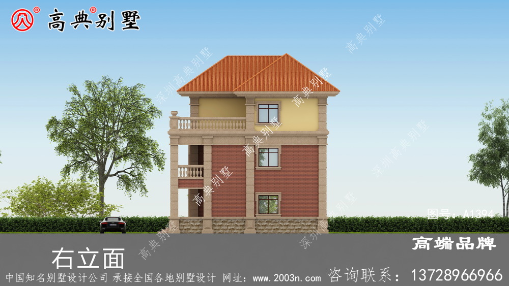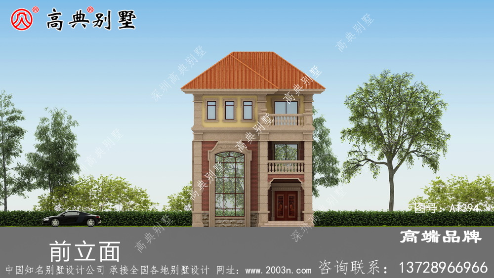 A1394号别墅外墙主要材料:天然岩石漆、黄锈石、真石漆、310X310S瓦、GRC水泥构件