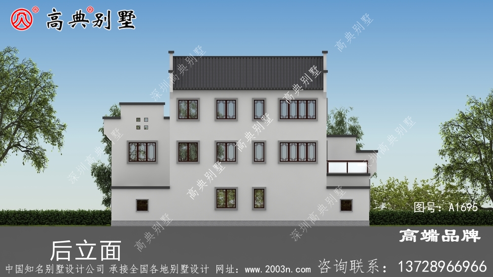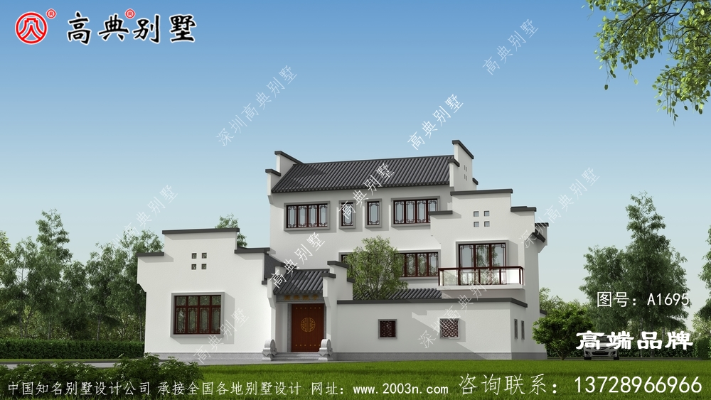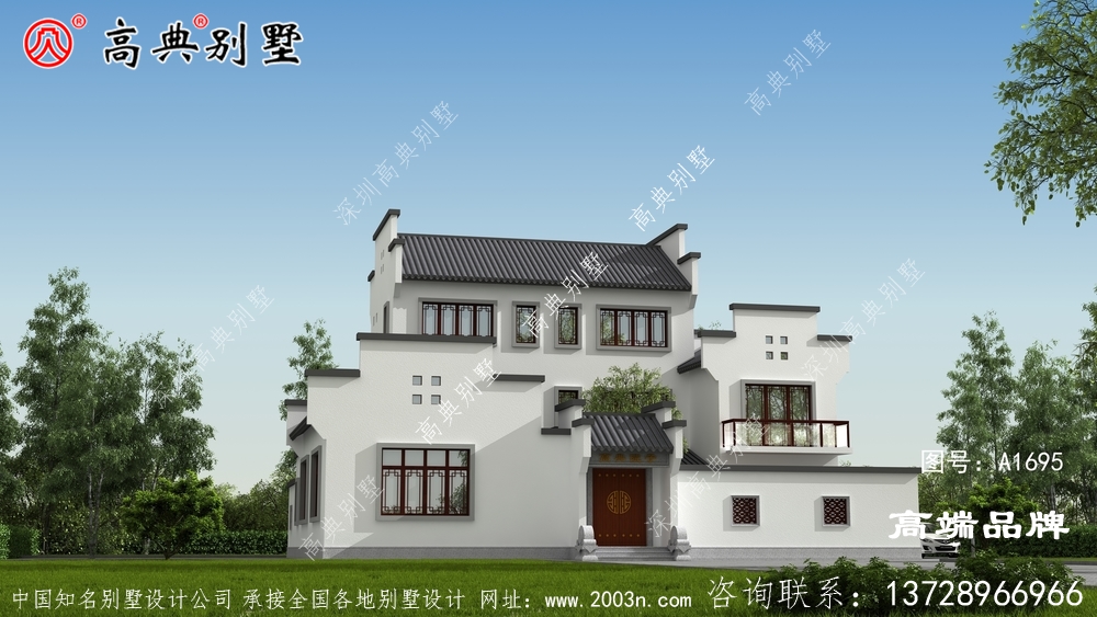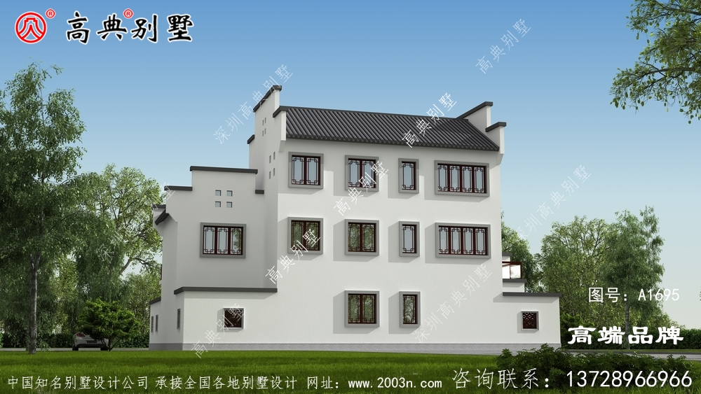 A1695号别墅外墙主要材料:麻石、真石漆、小青瓦