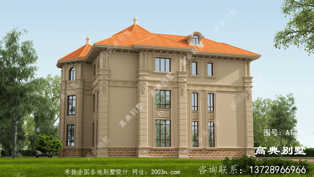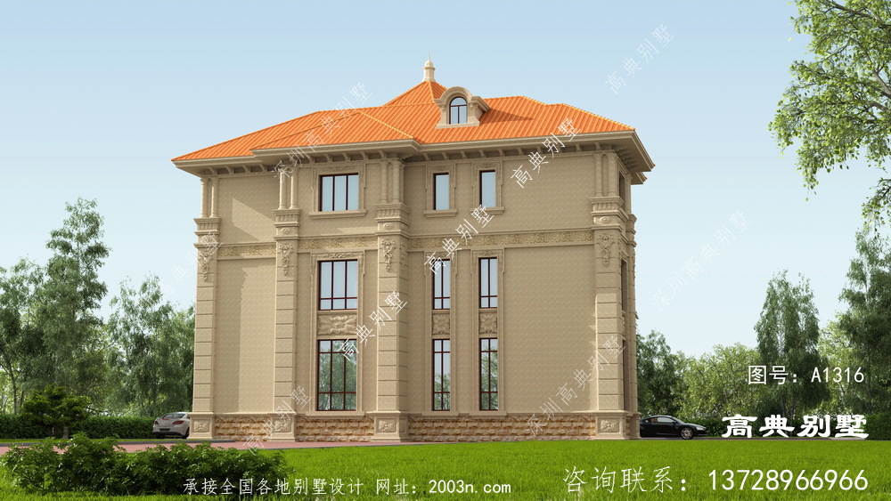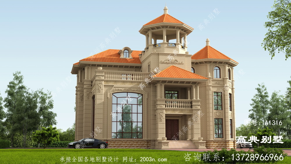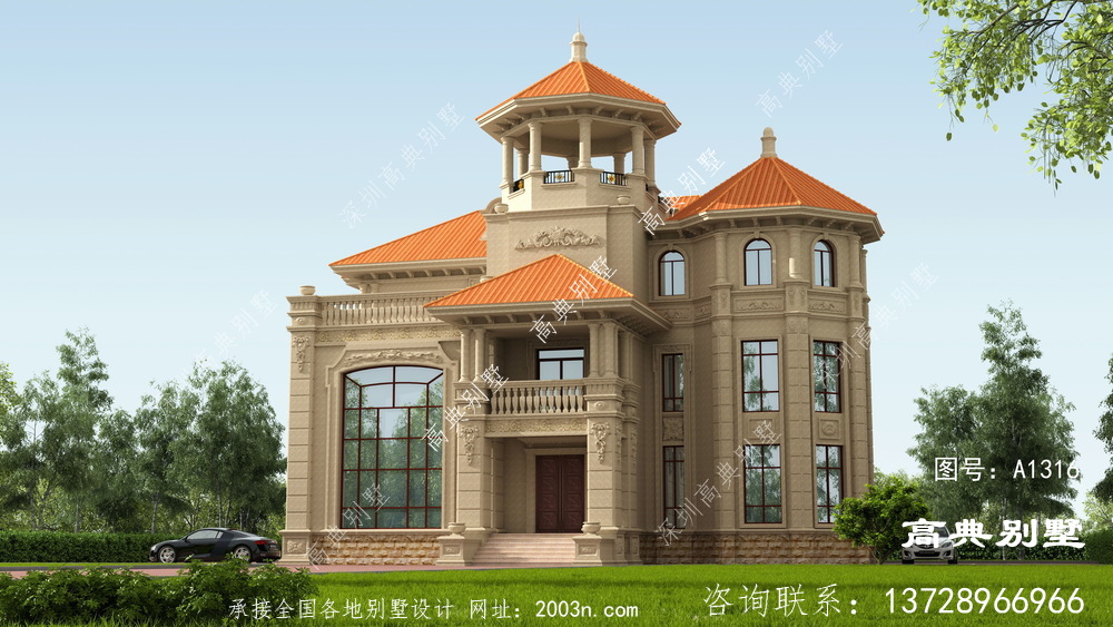 这座三层欧式别墅设计外观不仅华丽精美,而且充满着浪漫气息。