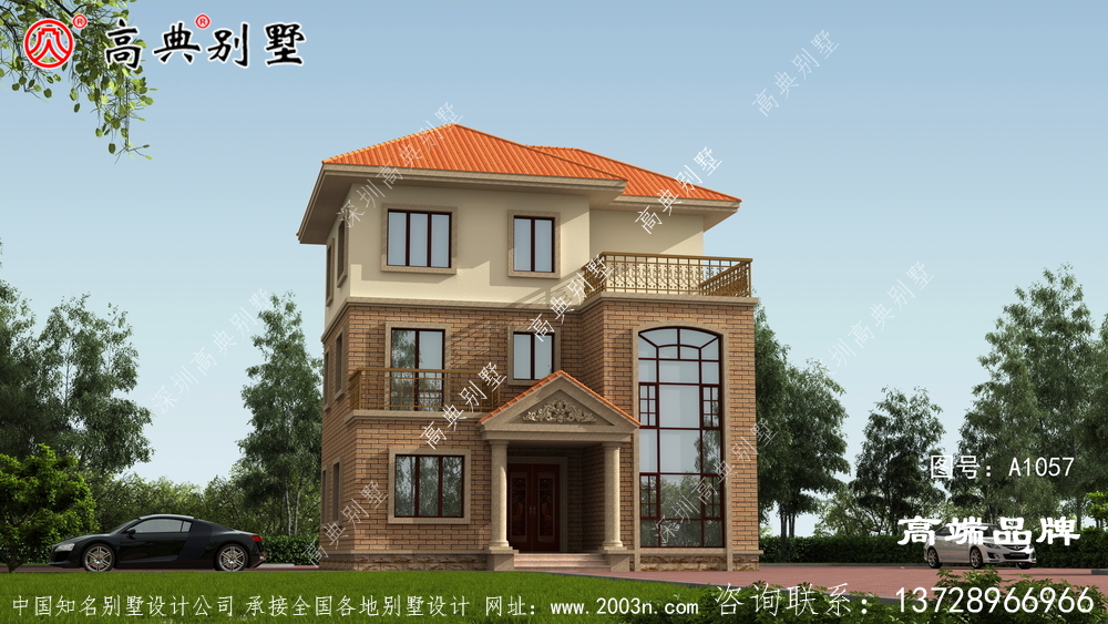 许多农村别墅在进行外观造型设计时,考虑到形成左右对称的形状,这种三层别墅户型采用了这种设计方式,真的很美。