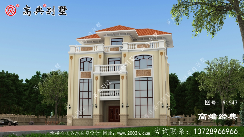 A1643号别墅设计图纸及效果图介绍:
