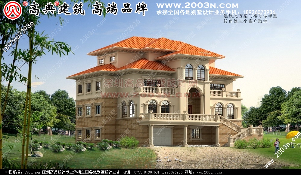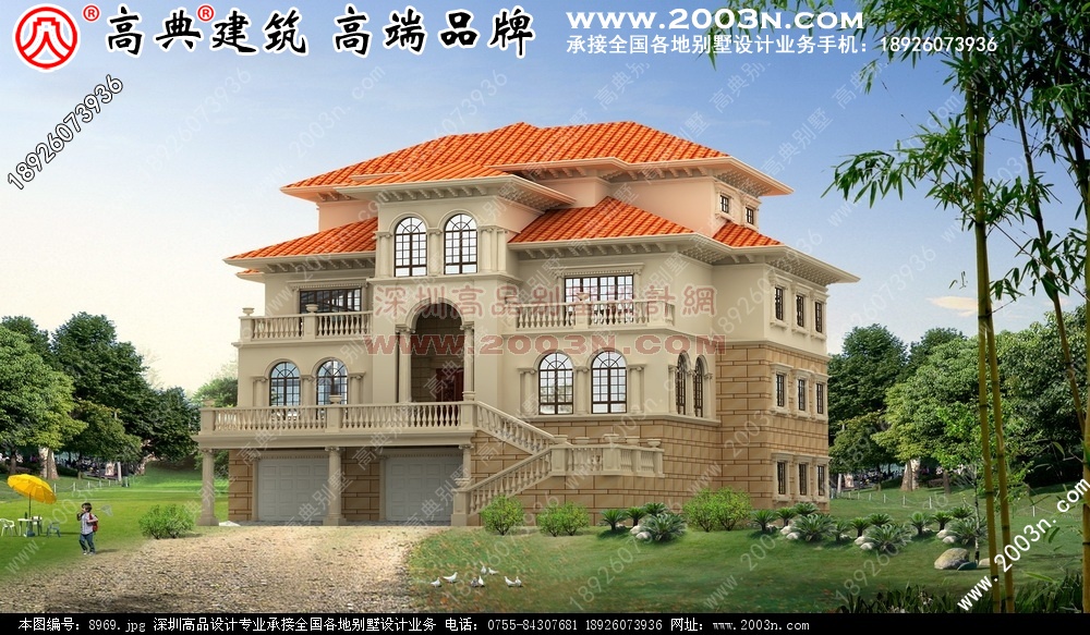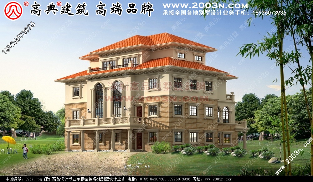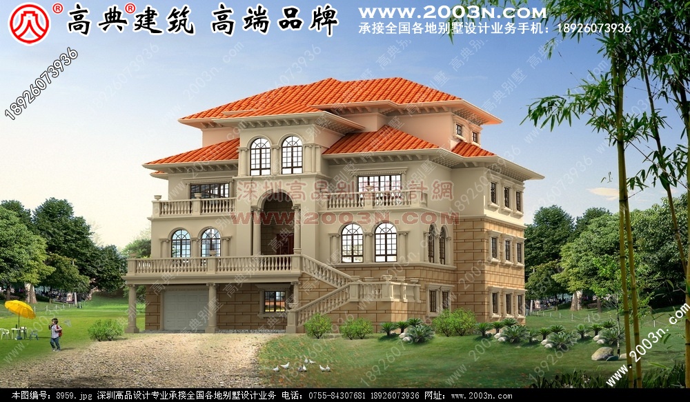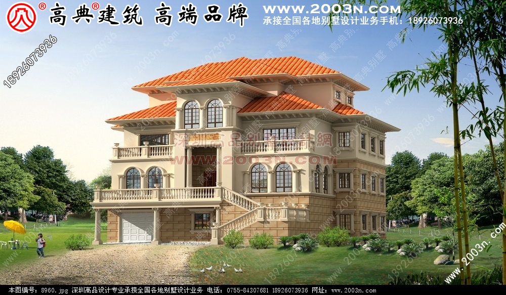 福建长乐三层别墅设计图效果12 张含前后左右
