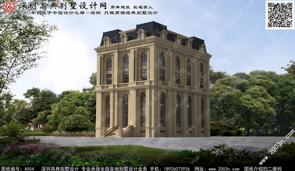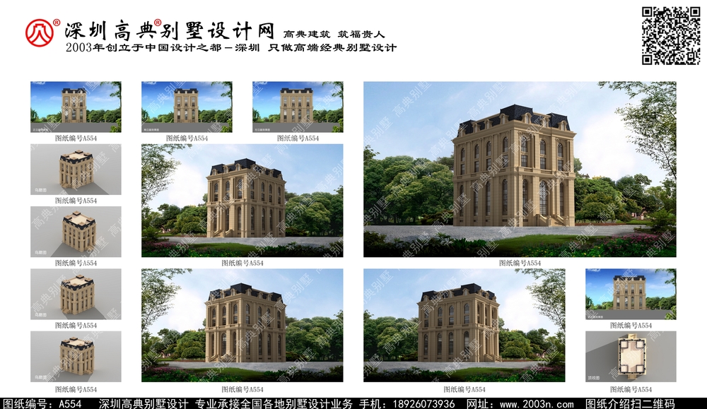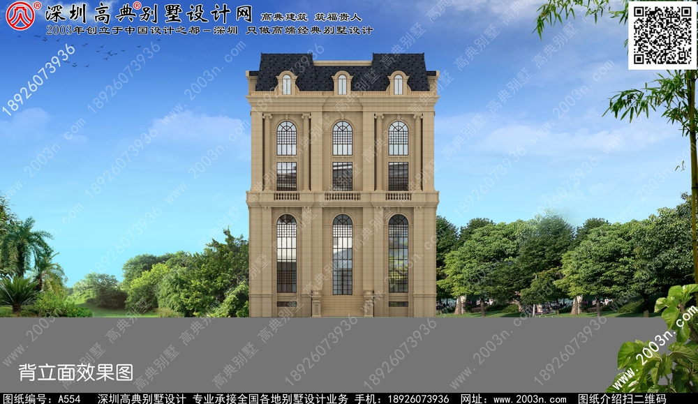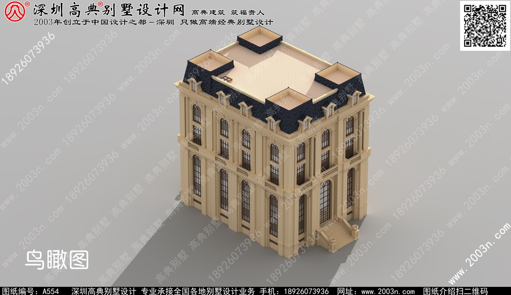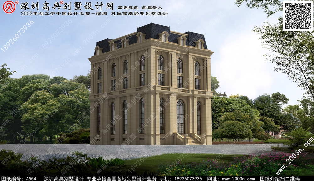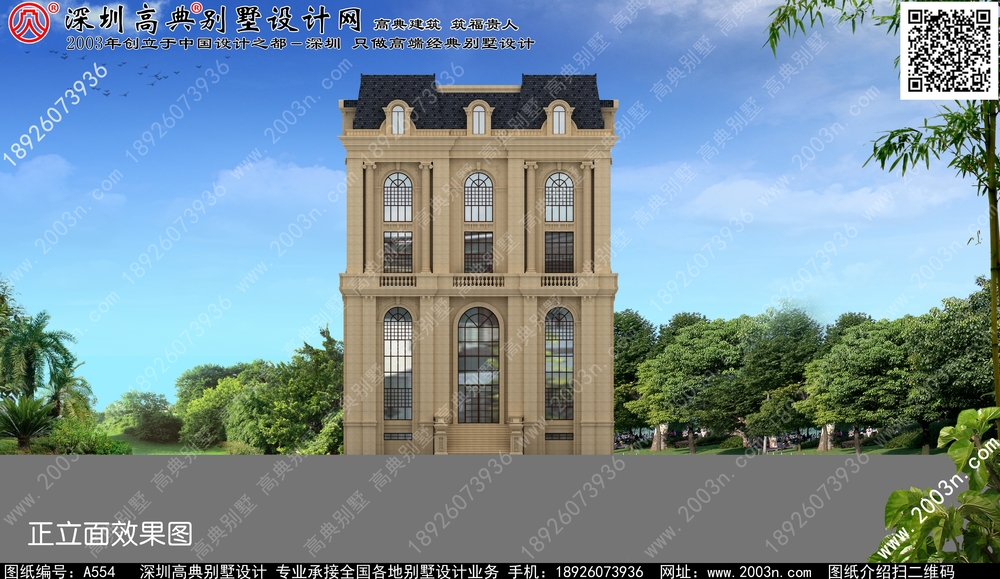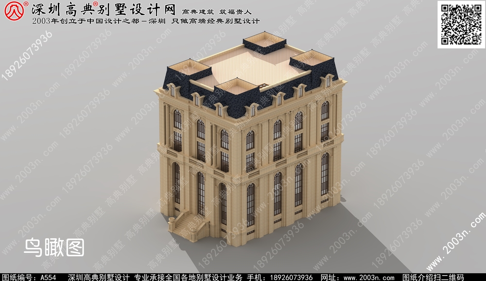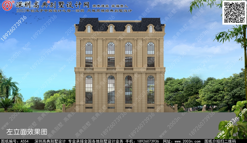 五层别墅外观效果图 首层318平方米图纸编号A554