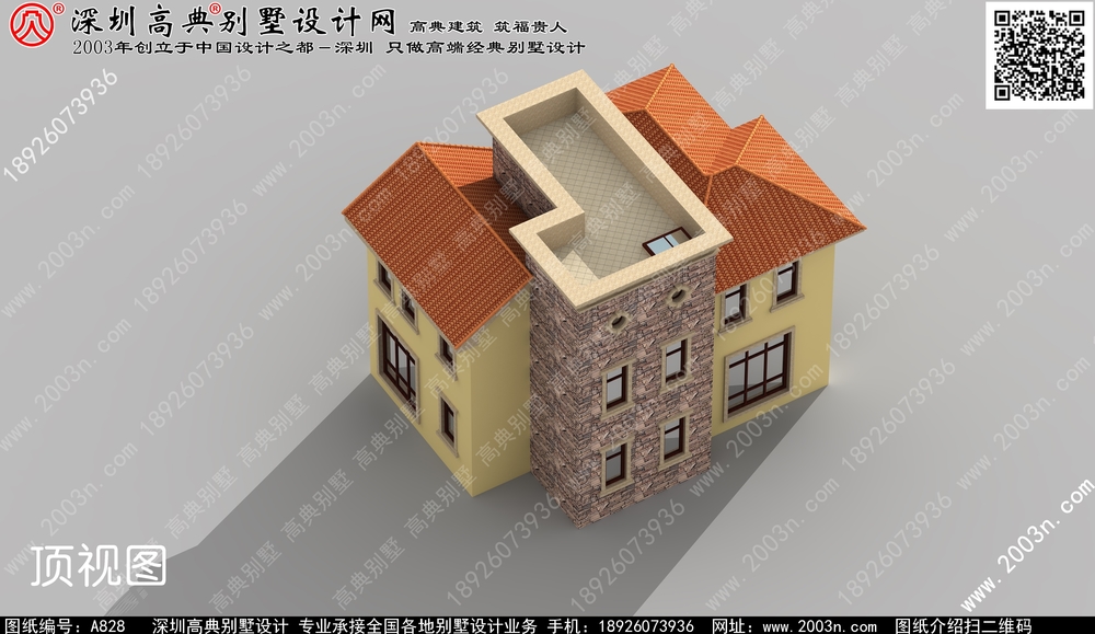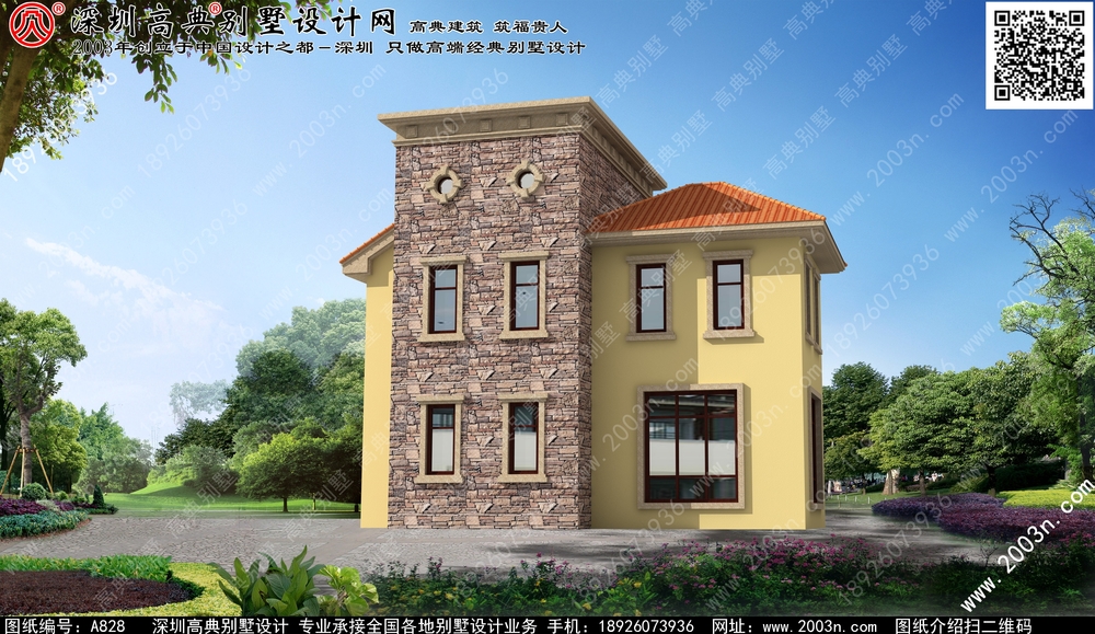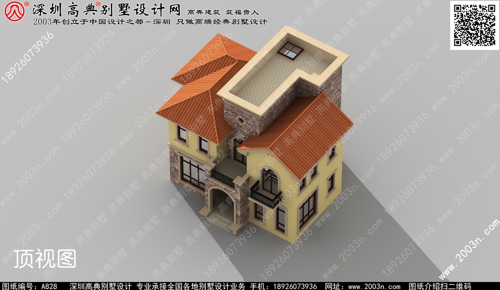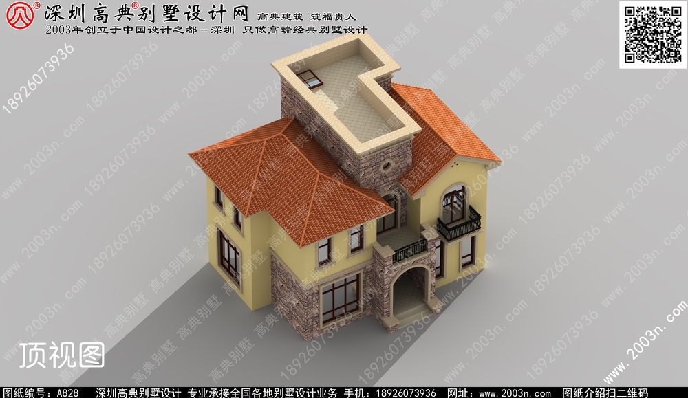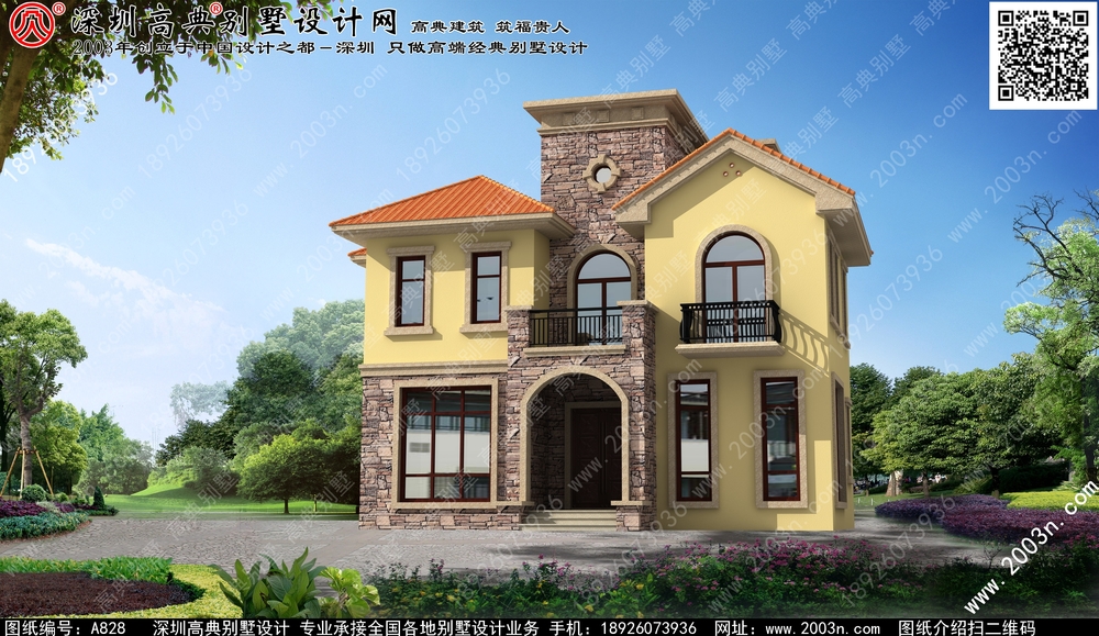 超豪华欧式别墅外观首层107平方米图纸编号A828