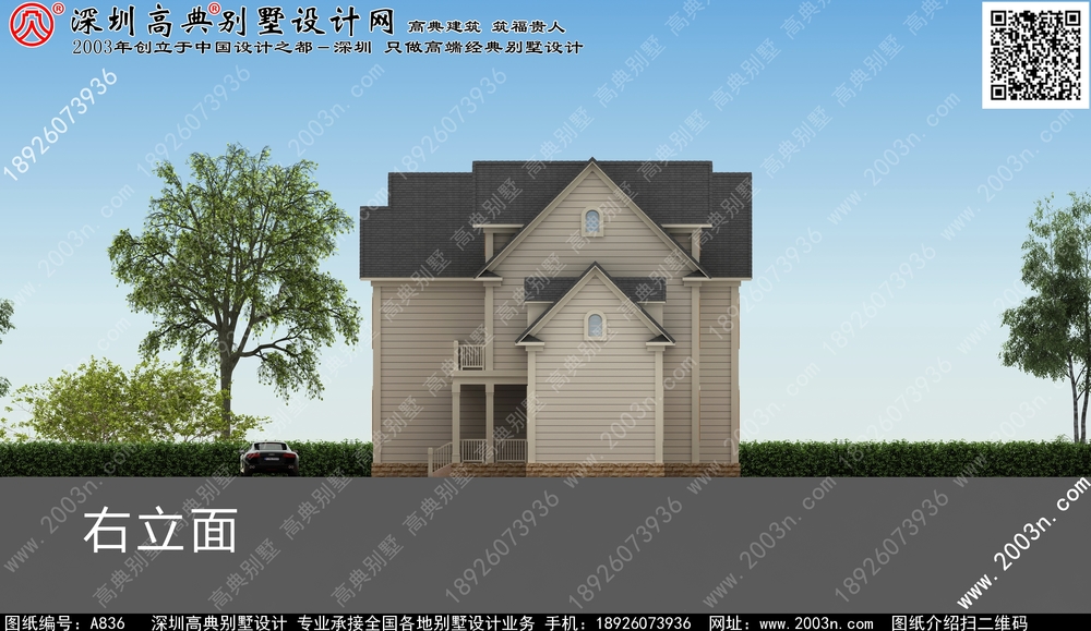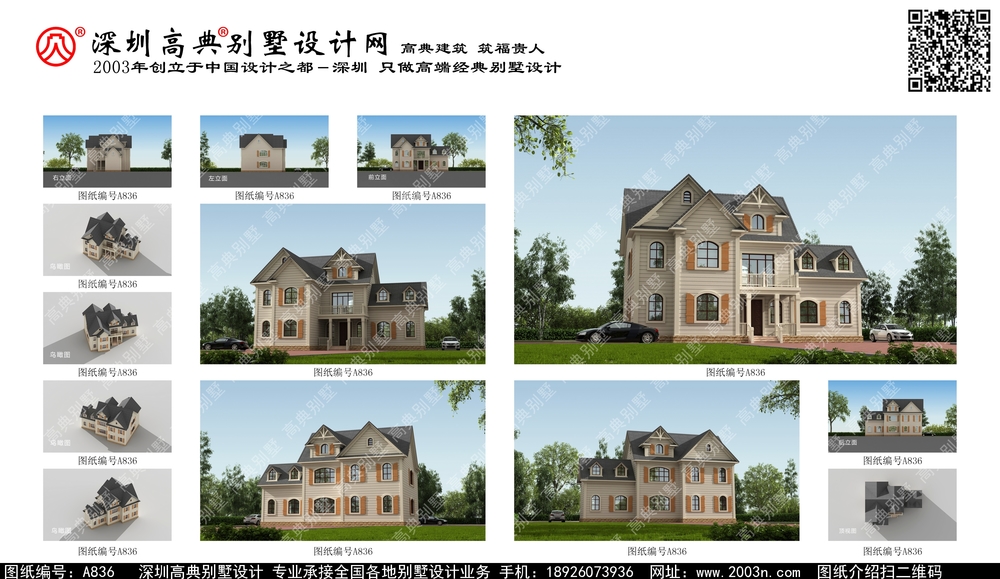 A836号别墅设计图纸及效果图介绍: