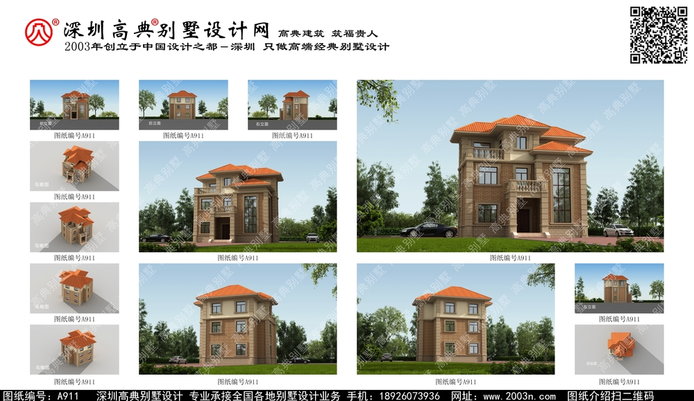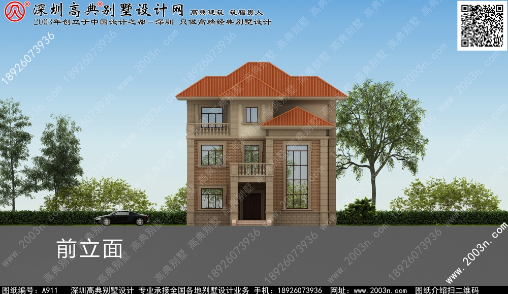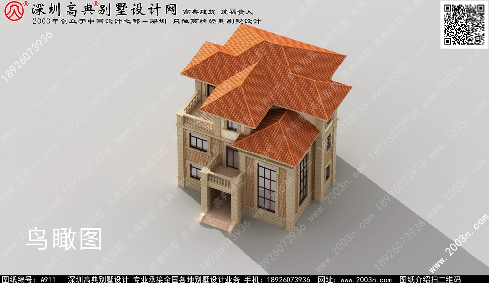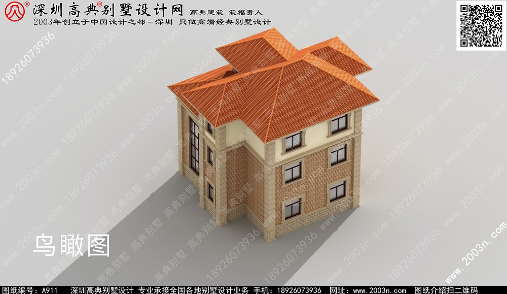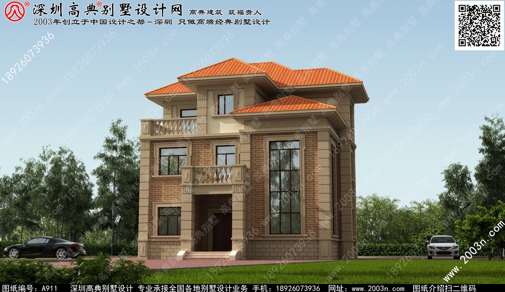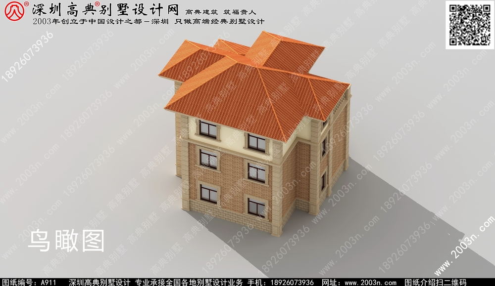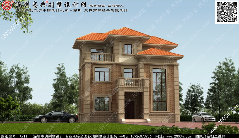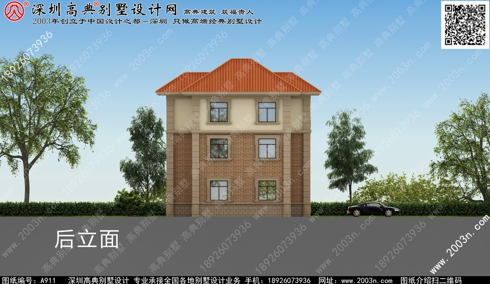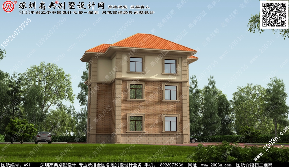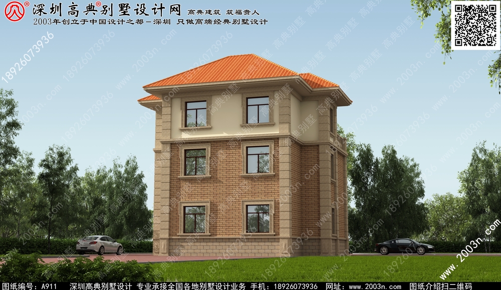 自建三层半别墅效果图首层117平方米图纸编号A911