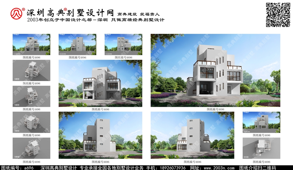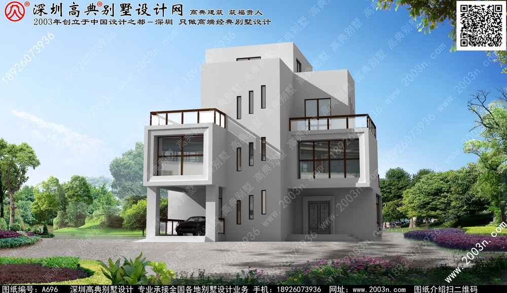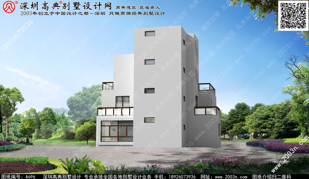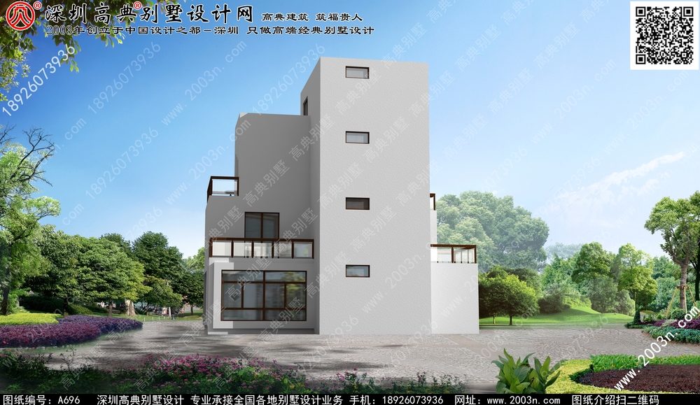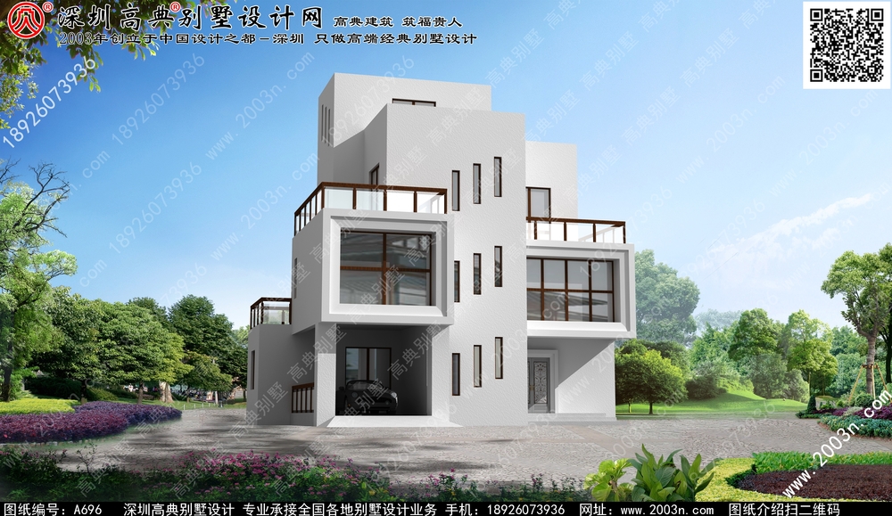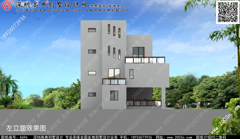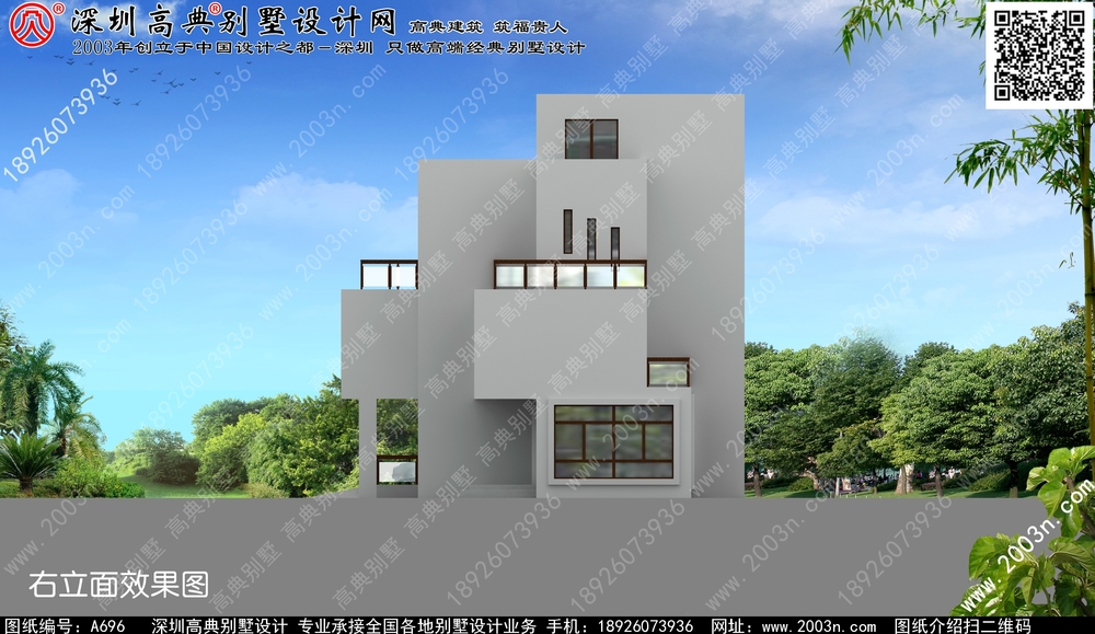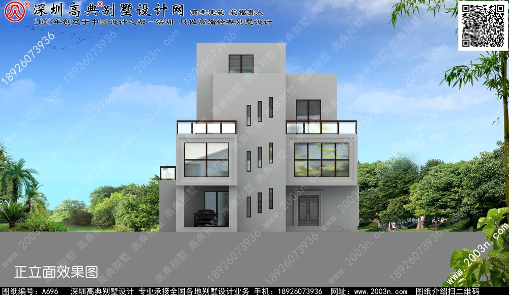 三层别墅效果图, 现代简约三层别墅, 别墅三层半设计效果图