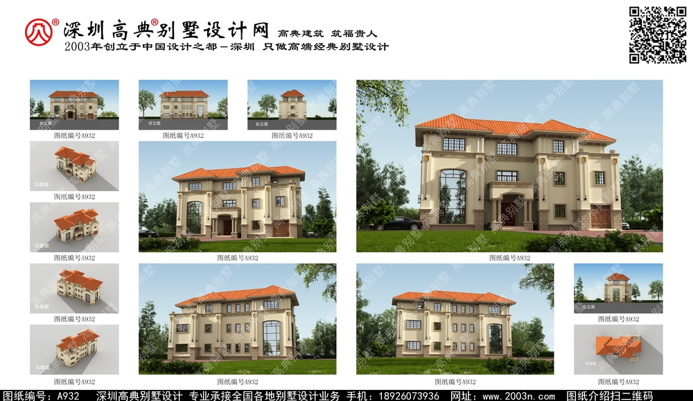 A932号别墅设计图纸及效果图介绍: