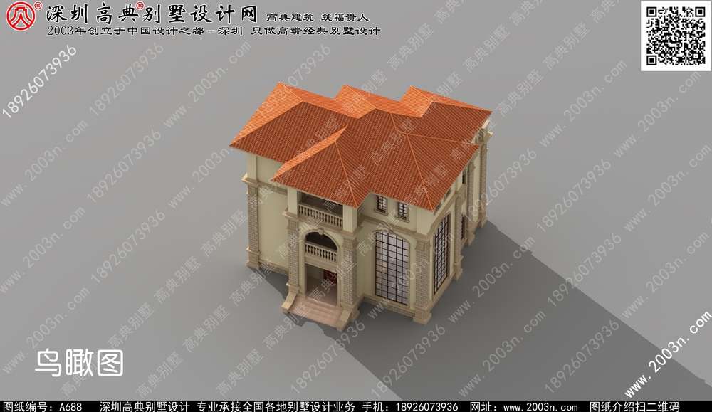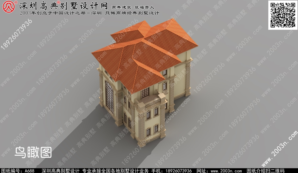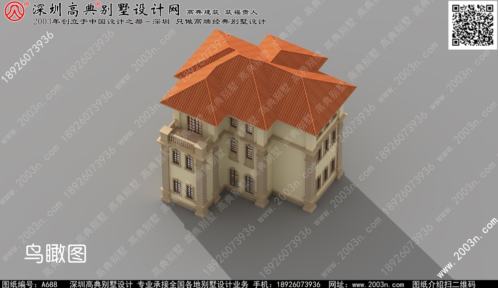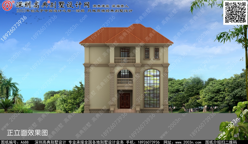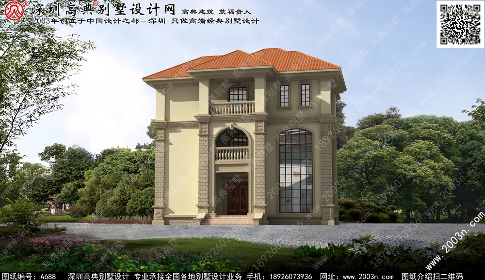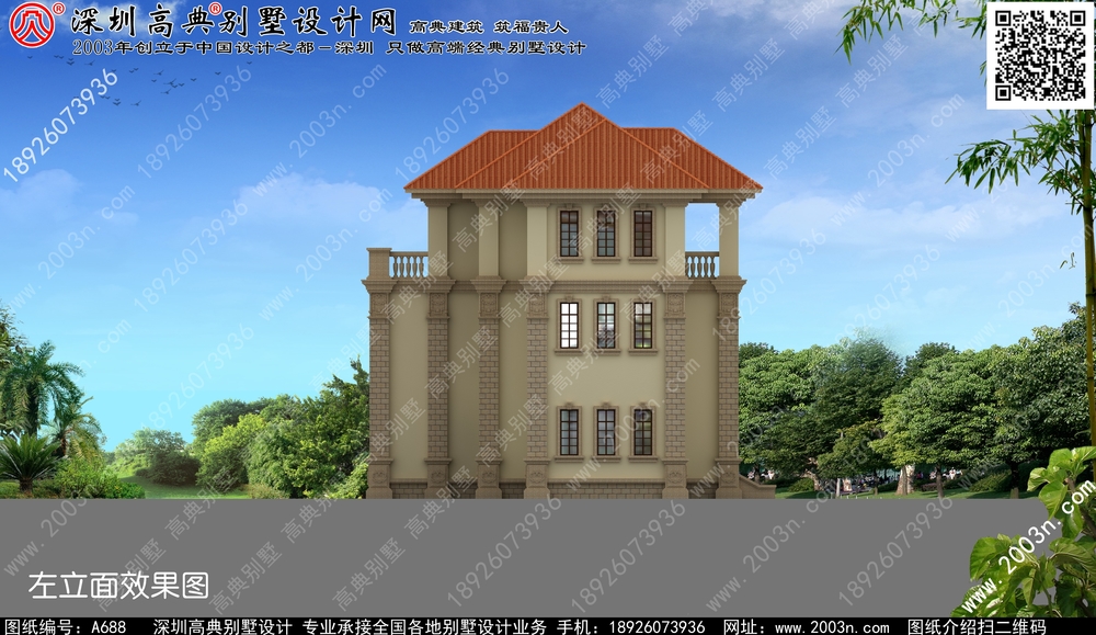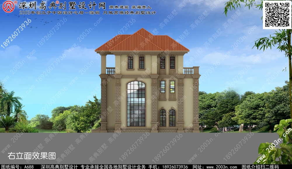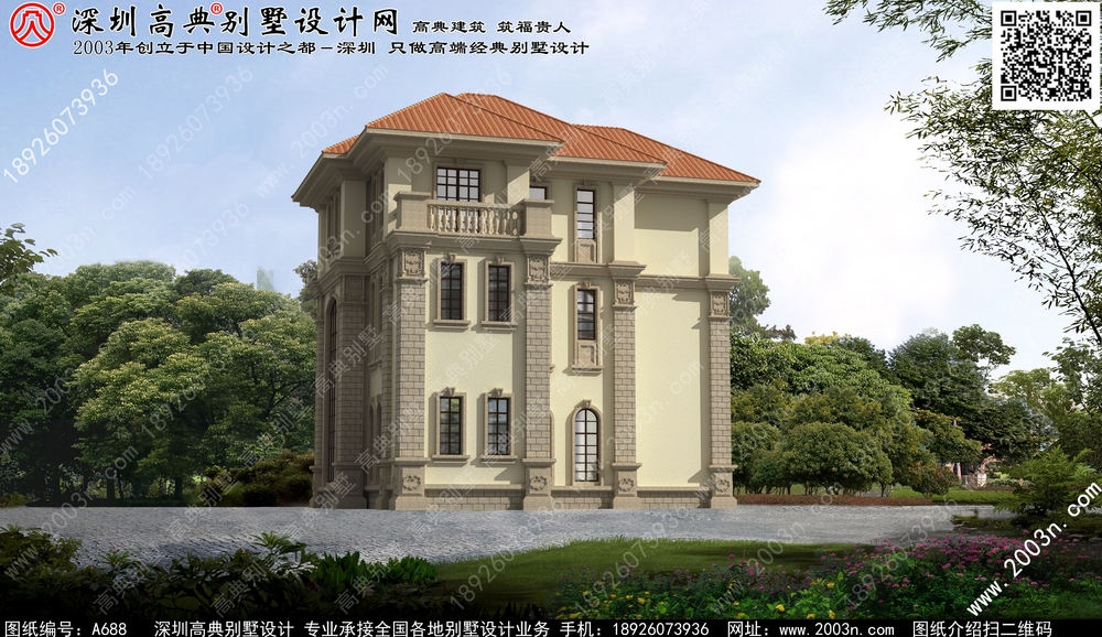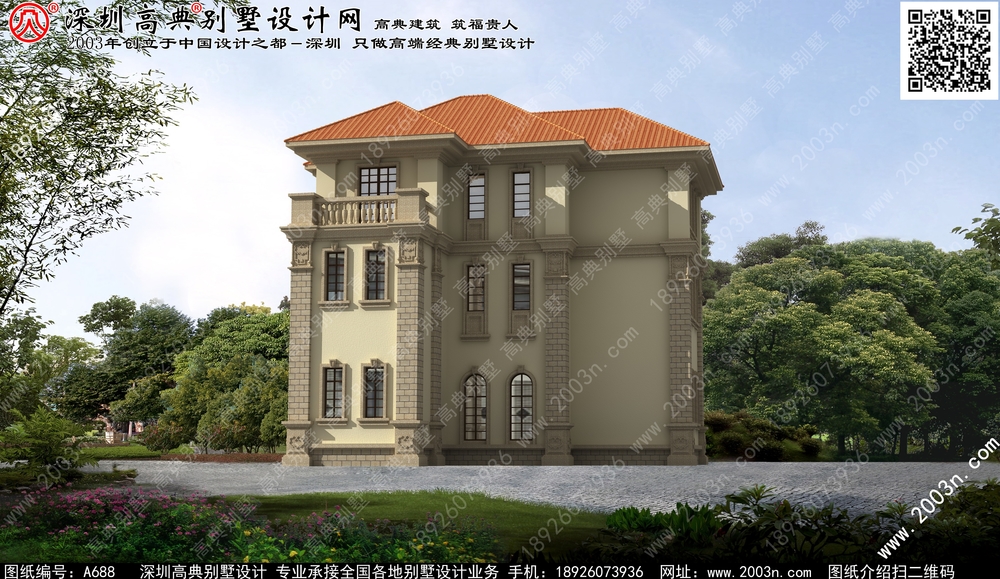 三层欧式别墅外观设计图纸首层129平图纸编号a688