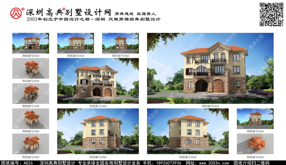 欧式别墅外观图大全首层159平方米图纸编号A826