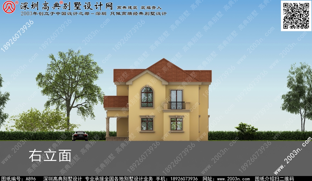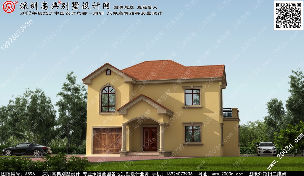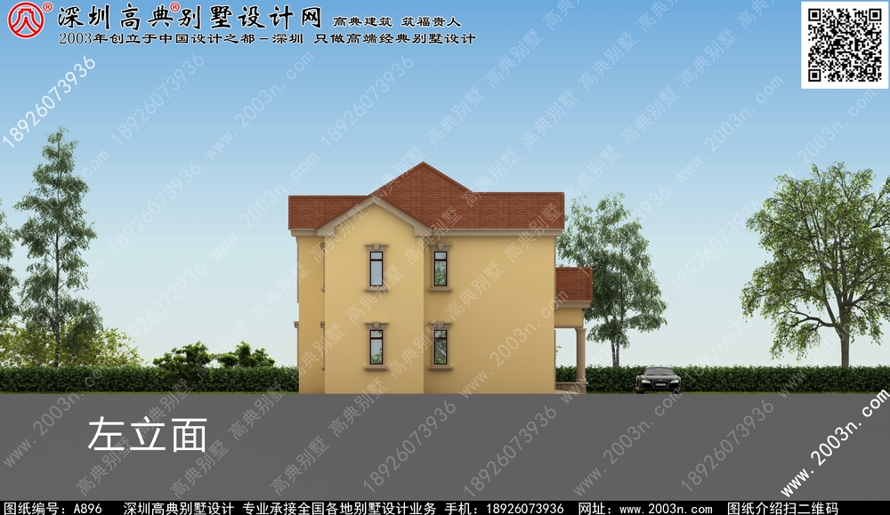 二层半别墅效果图, 新农村别墅设计图, 乡村二层别墅设计图